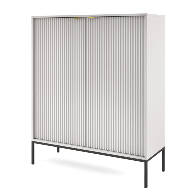 Commode NANAIMO K104 – Blanc – Poignées dorées – Largeur 104 cm, Hauteur 125 cm, Profondeur 39 cm