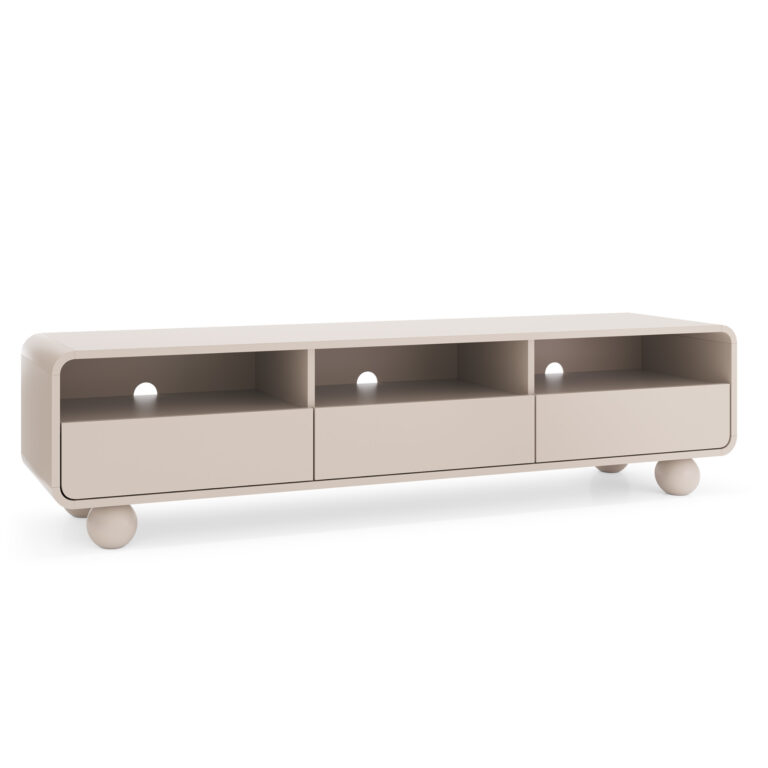 TV cabinet KAMLOOPS – Kashmir – Rounded – 3 Drawers – Width 180 cm, Height 44 cm, Depth 39 cm