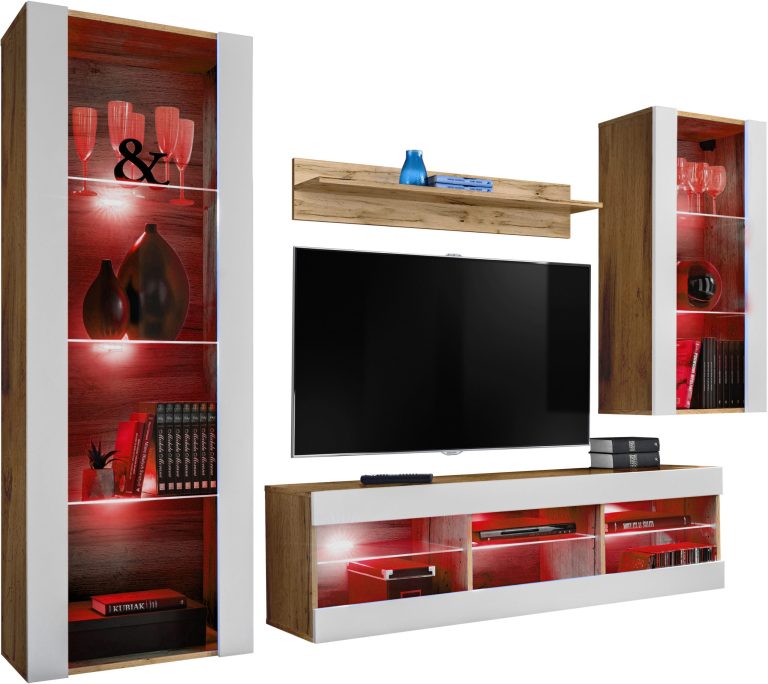 Ensemble de meubles RTV Tivoli Medio, Blanc/Wotan LED RVB