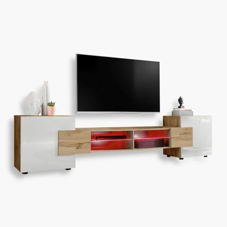 Armoire RTV Merano, Wotan/blanc éclairage LED RVB