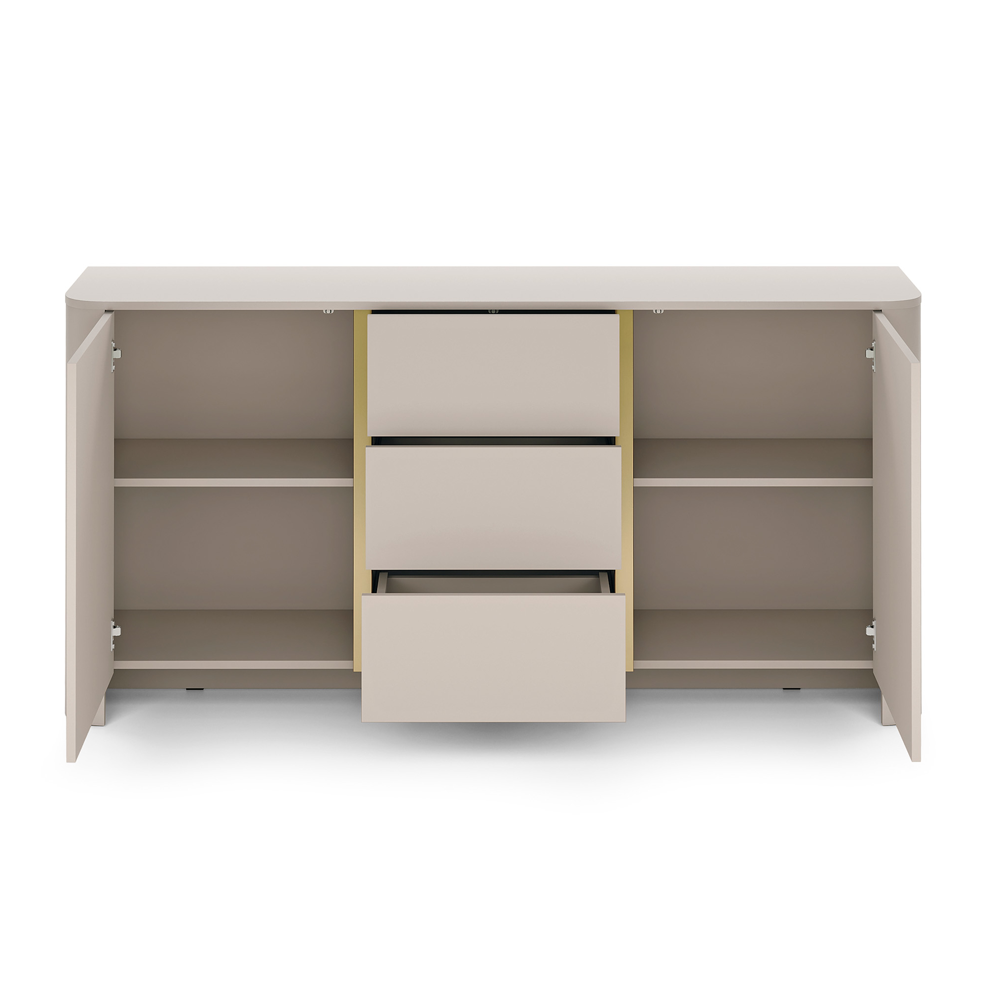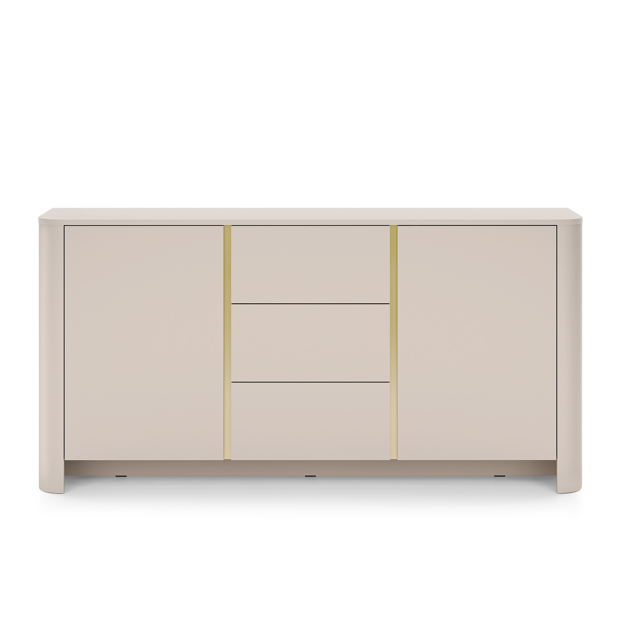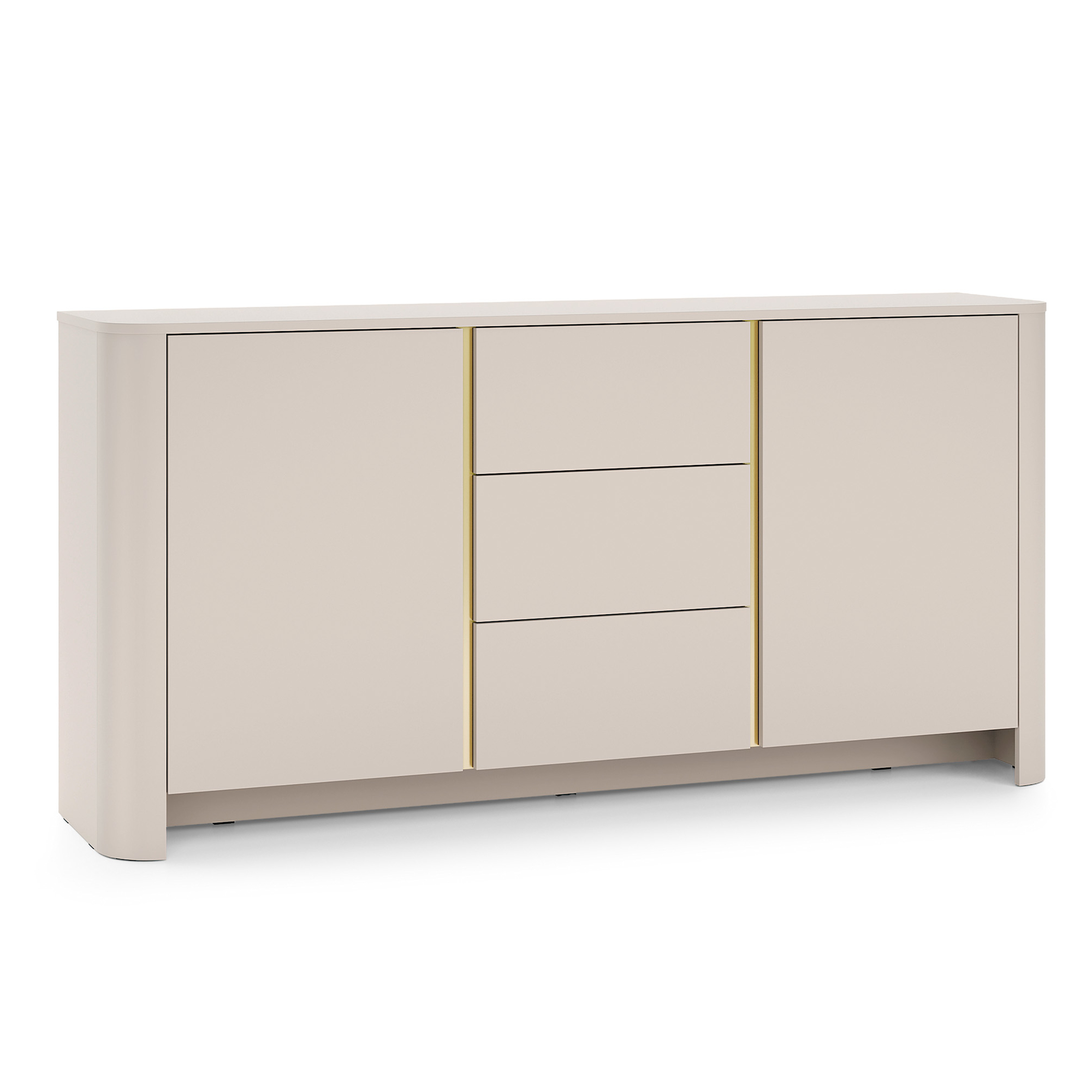 Le corps et les façades sont en panneau stratifié de 16 mm d’épaisseur, et tous les bords sont protégés par un chant ABS, ce qui augmente la résistance à l’utilisation quotidienne et assure une finition élégante. Un élément caractéristique de la commode est ses côtés arrondis en panneau MDF de 18 mm, qui ajoutent une légèreté, une douceur et un caractère exceptionnel à l’ensemble.