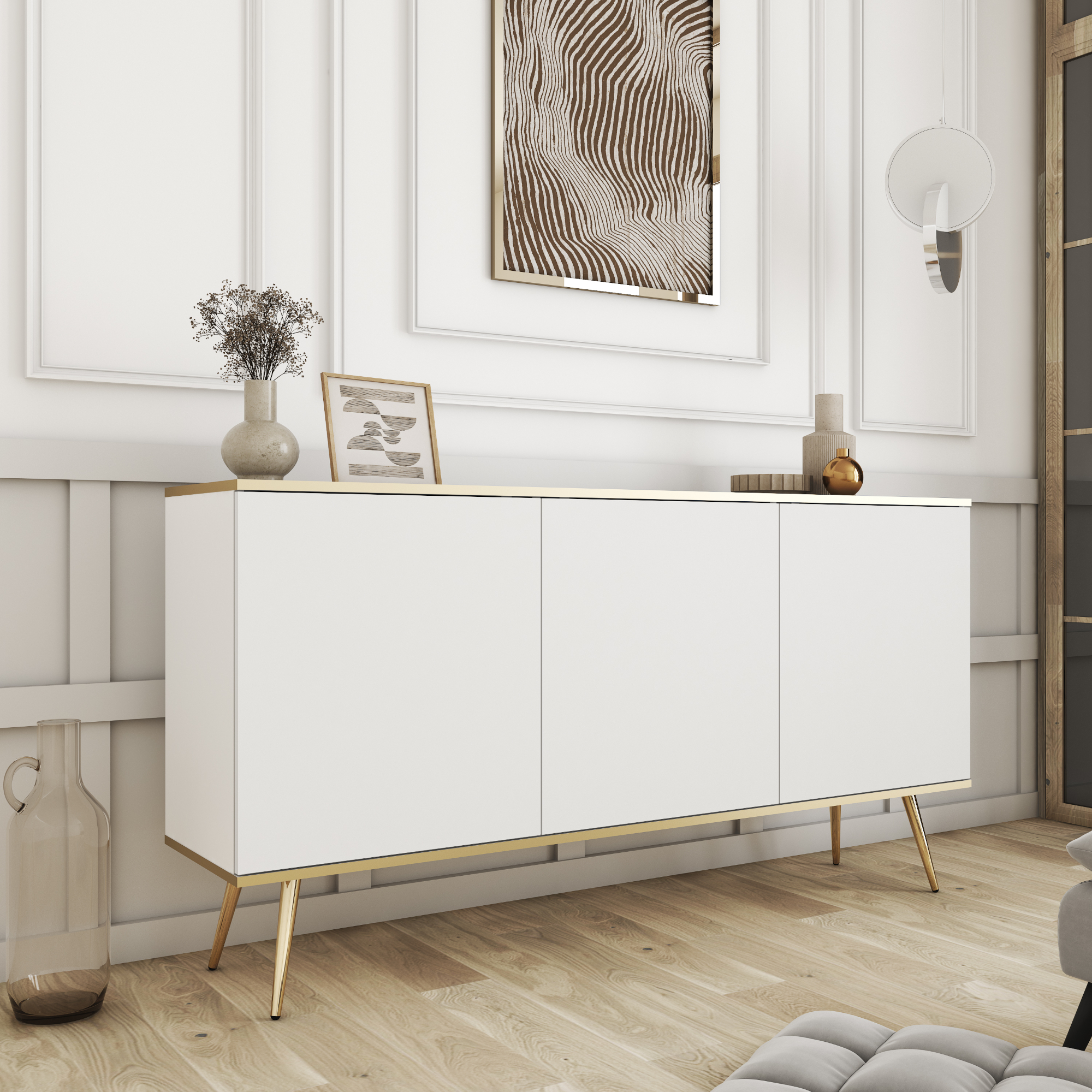 La commode Banff 160 cm est un meuble qui séduit non seulement par son design, mais aussi par sa fonctionnalité. Elle s’intègre parfaitement dans des aménagements modernes, glamour ou classiques, devenant un atout pour chaque salon, chambre ou salle à manger.