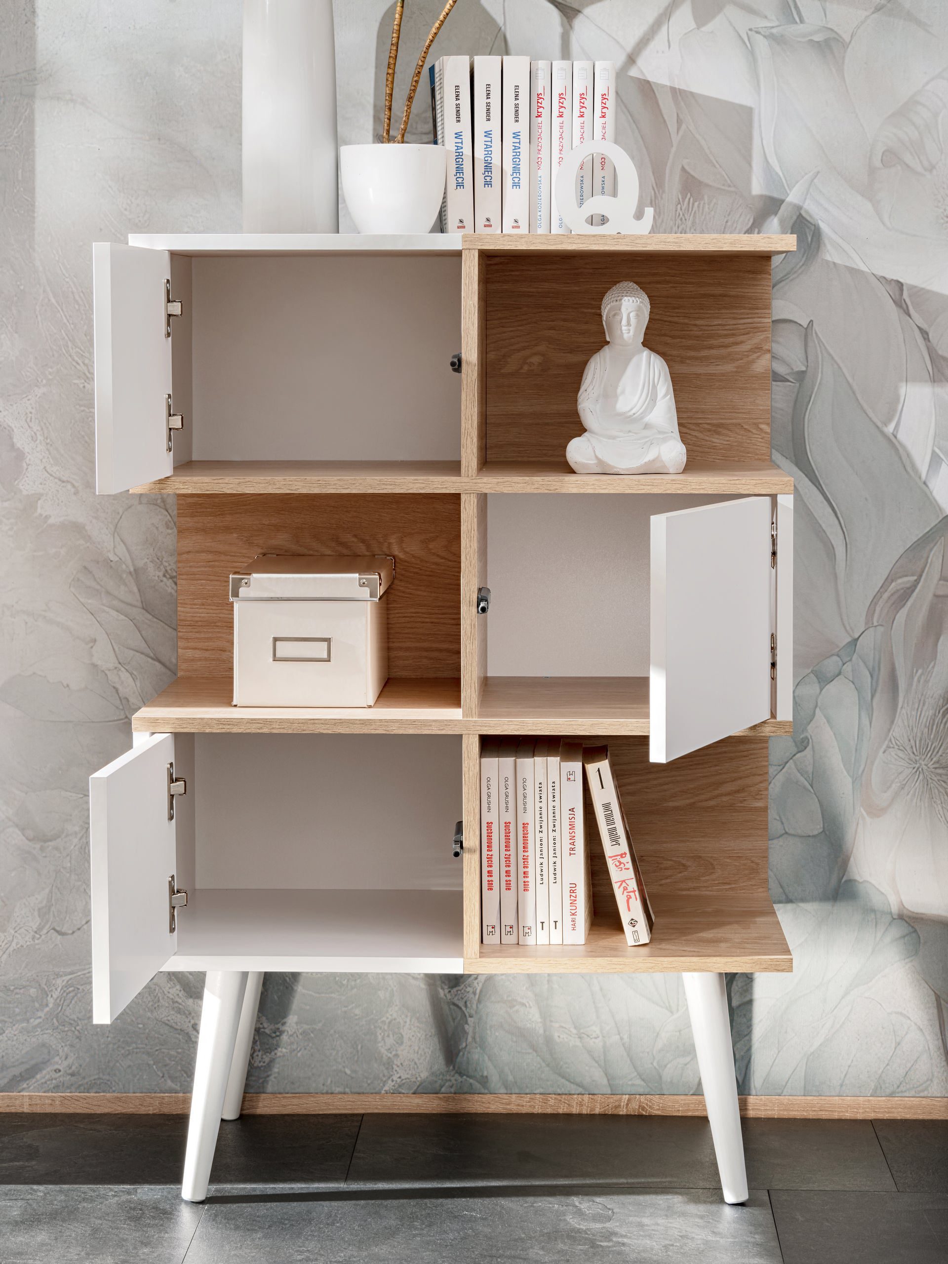 L’Buffet étagère de la série Forio allie un minimalisme moderne à une fonctionnalité intemporelle. Sa conception à plusieurs niveaux crée un espace de rangement supplémentaire pour les livres, les objets décoratifs ou les souvenirs de famille, tout en conservant une forme légère et élégante.Grâce à son caractère universel, ce meuble s’intègre parfaitement dans des intérieurs de style scandinave, industriel ou contemporain. Ses pieds légèrement inclinés et élancés, inspirés par l’esthétique des années 60 et 70, confèrent à l’ensemble une élégance subtile, renforçant l’harmonie de toute la collection.Buffet Étagère Forio :