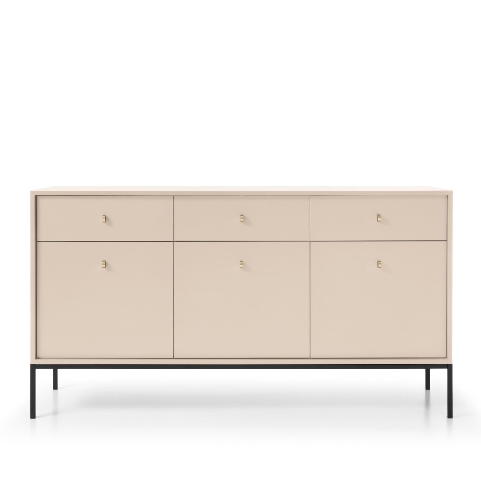 La commode MONCTON se distingue par sa forme géométrique reposant sur des pieds en métal de couleur noire, qui assurent la stabilité et la légèreté de la construction. Elle est réalisée en panneau laminé de 16 mm, résistant aux dommages, et ses bords sont en outre protégés par un chant ABS. C’est une garantie de durabilité et de solidité pendant des années.