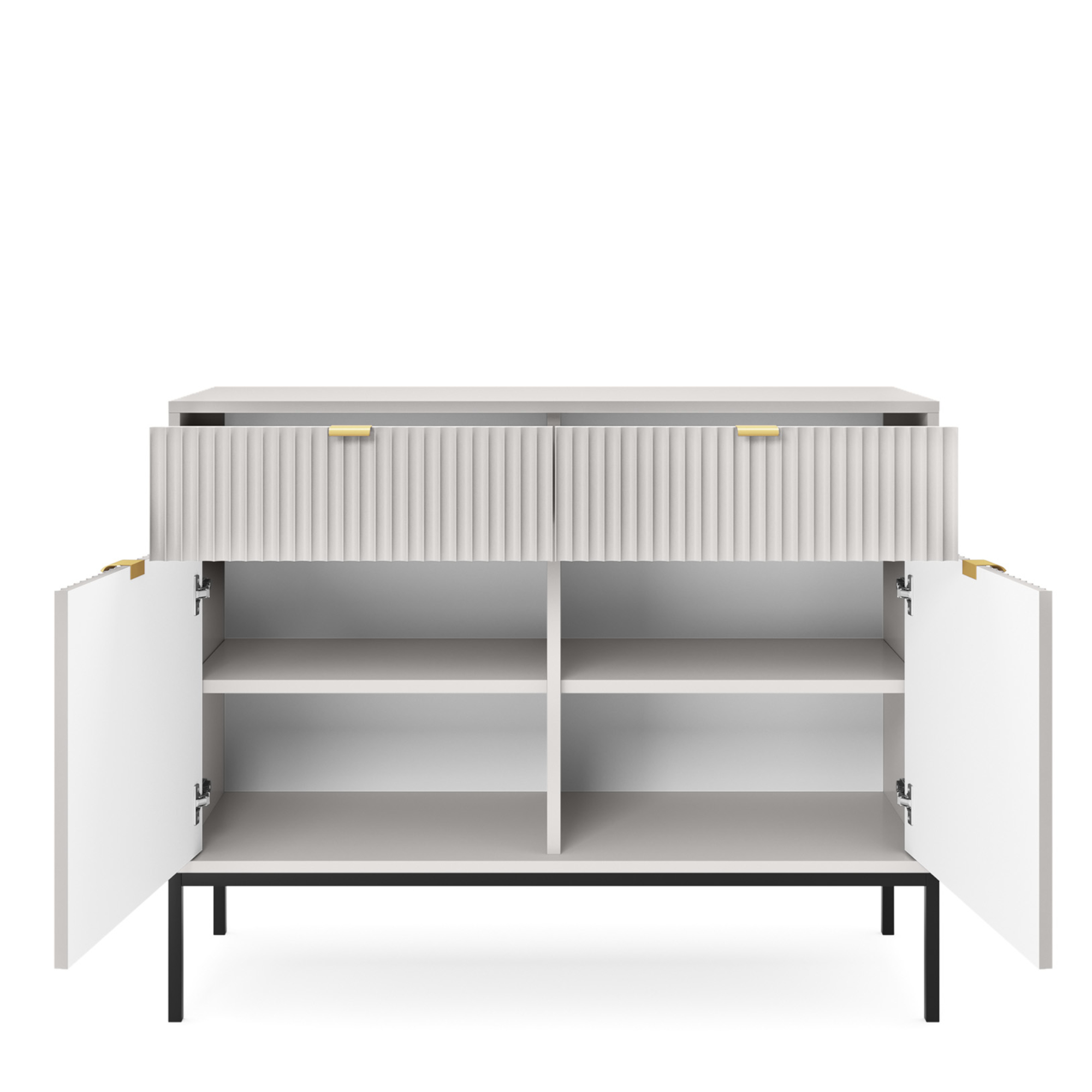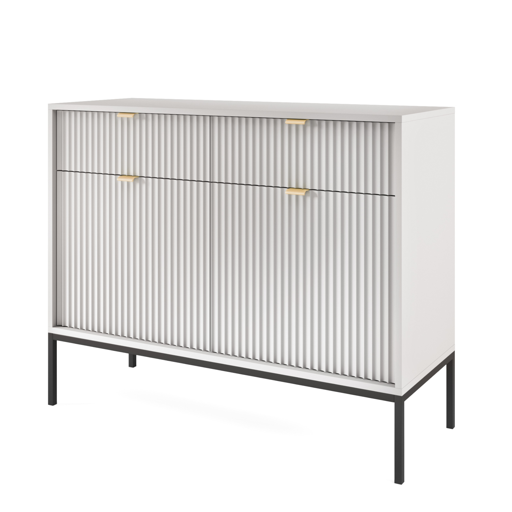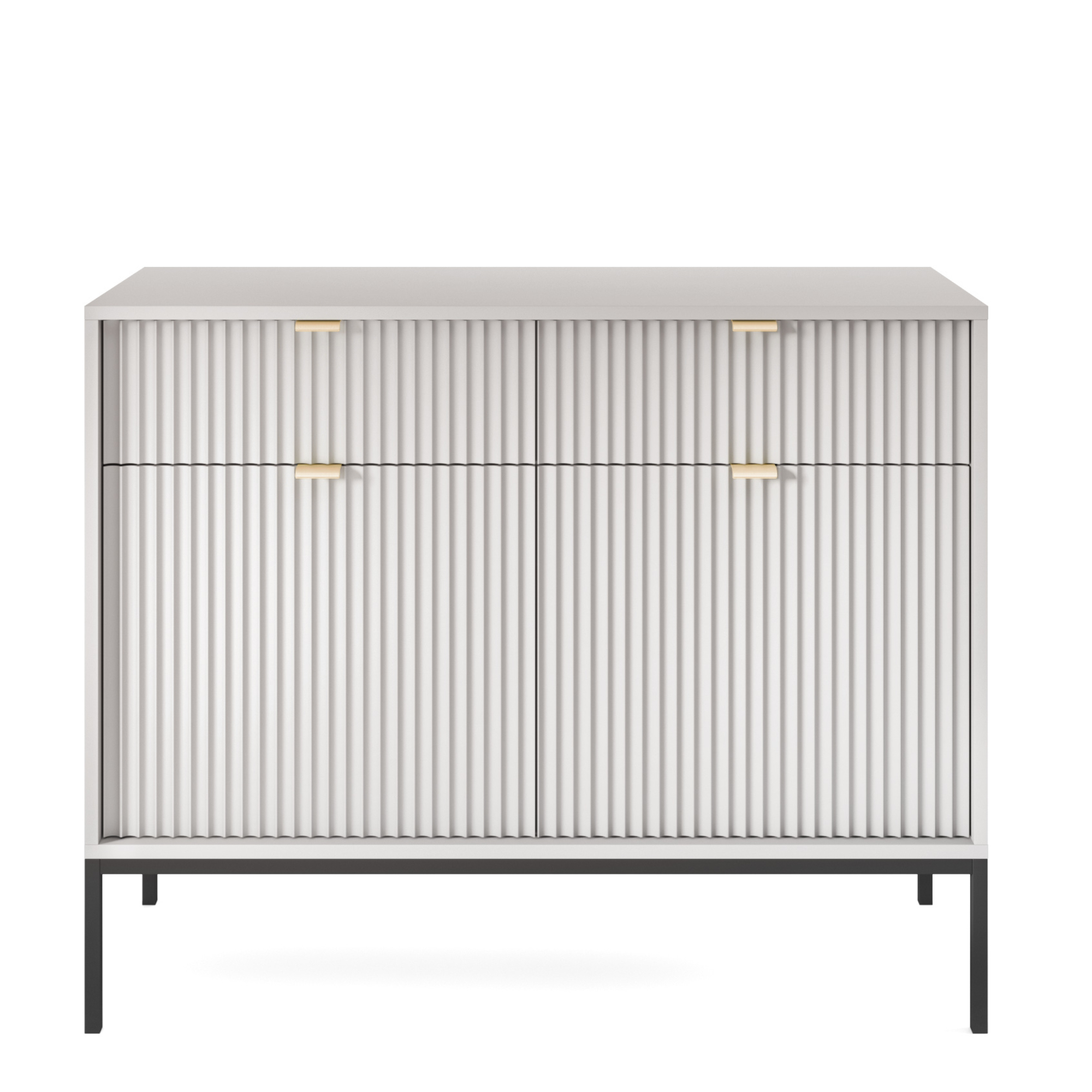 Commode NANAIMO KSZ104 – Grise – Poignées dorées – 2 tiroirs – Largeur 104 cm, Hauteur 83 cm, Profondeur 39 cm