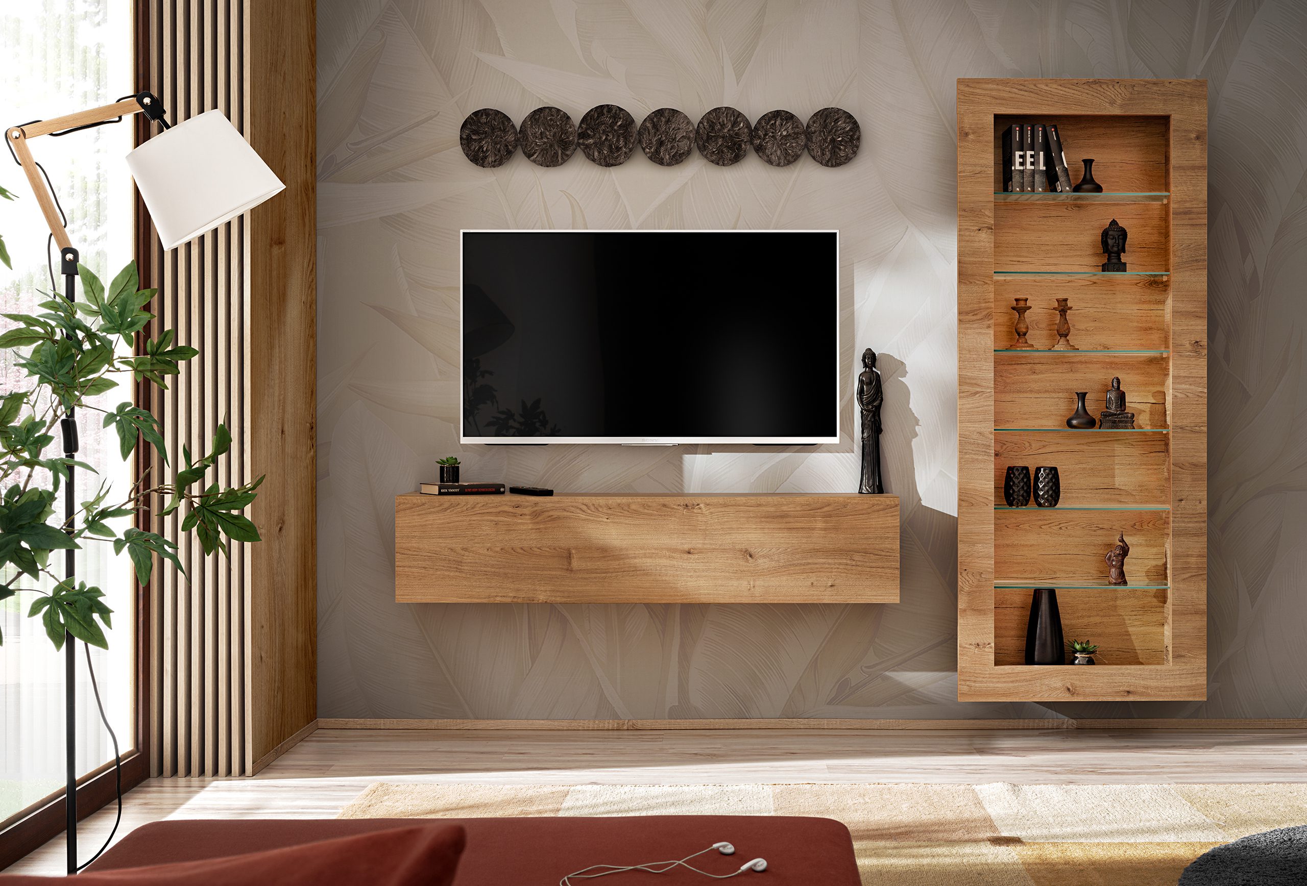 Élégant meuble TV COMO dans une teinte chaude de bois apporte un charme naturel à l’intérieur.Le cadre solide garantit durabilité et un aspect intemporel.Le meuble dispose de :