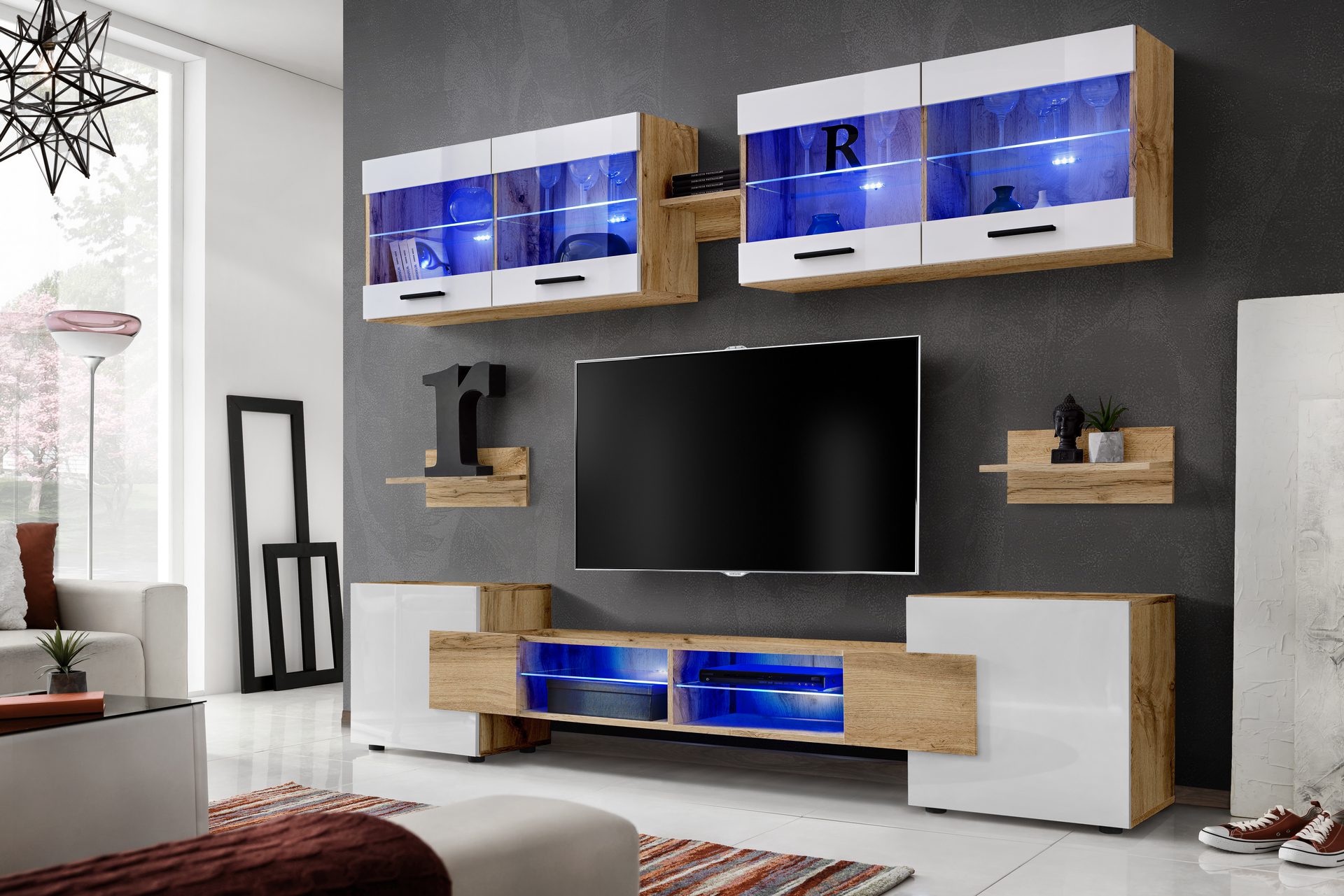 Ensemble de meubles RTV Foggia, blanc/éclairage LEDotan bleu