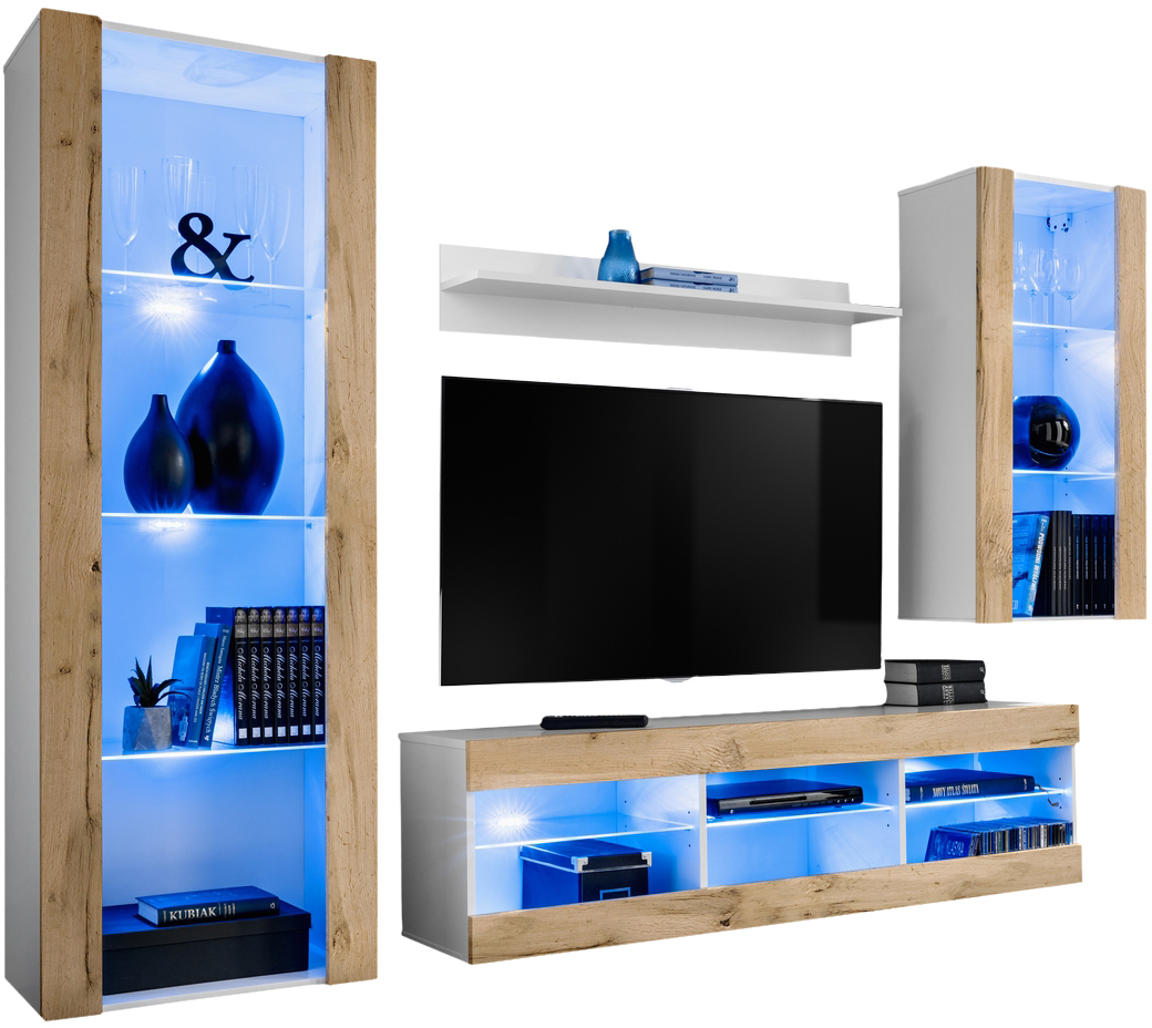 Ensemble de meubles RTV Tivoli Medio, Wotan/blanc LED bleu