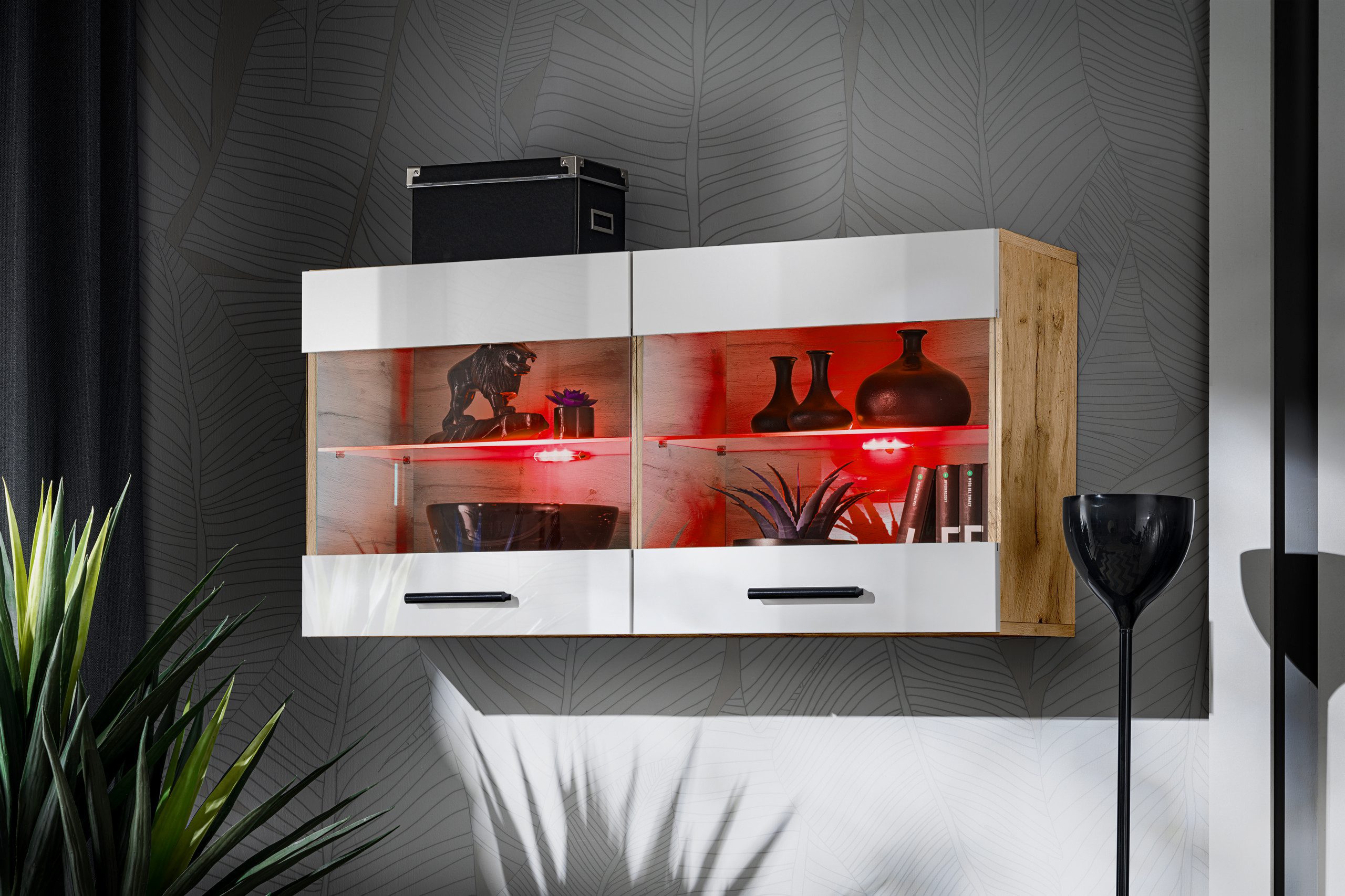 Étagère suspendue Savona, Blanc/Wotan Éclairage LED RVB