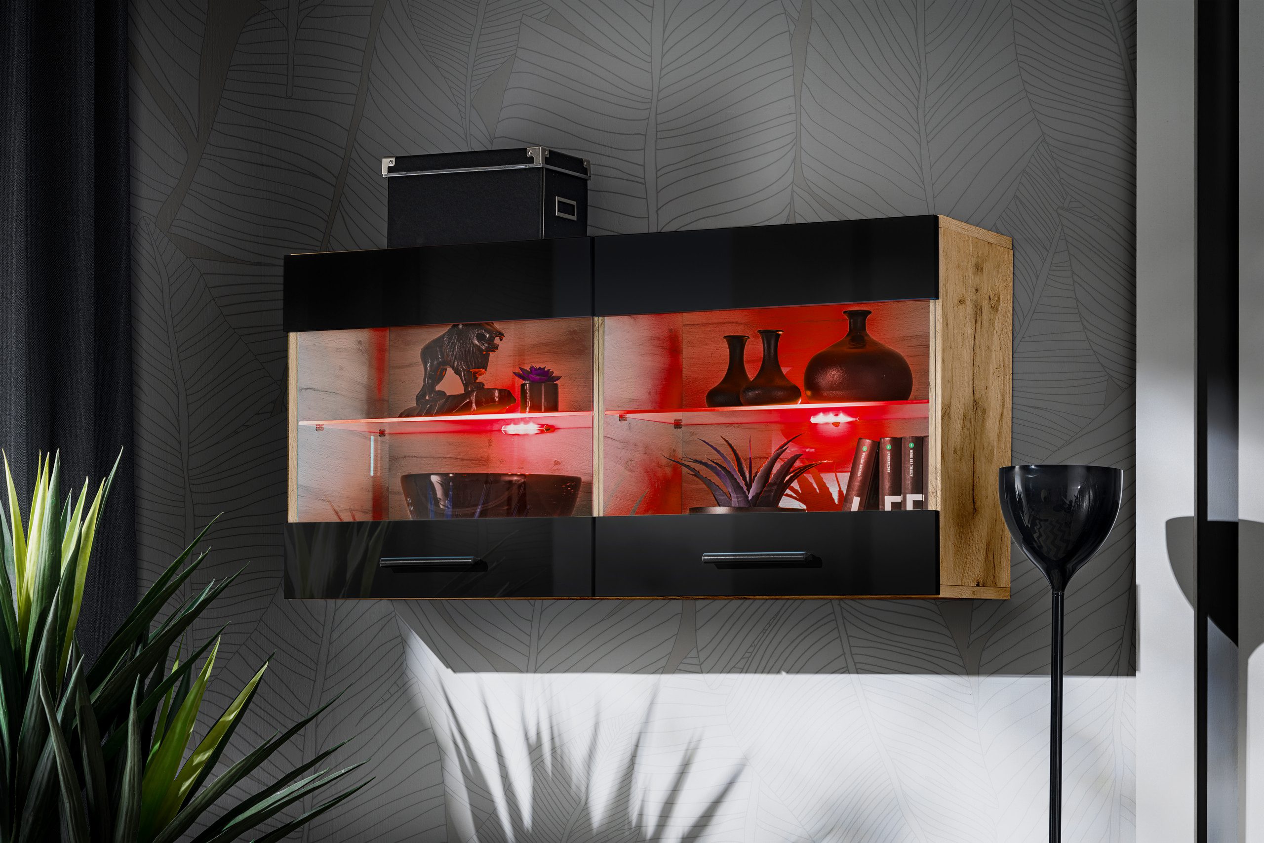 Étagère suspendue Savona, Noir/Wotan Éclairage LED RVB