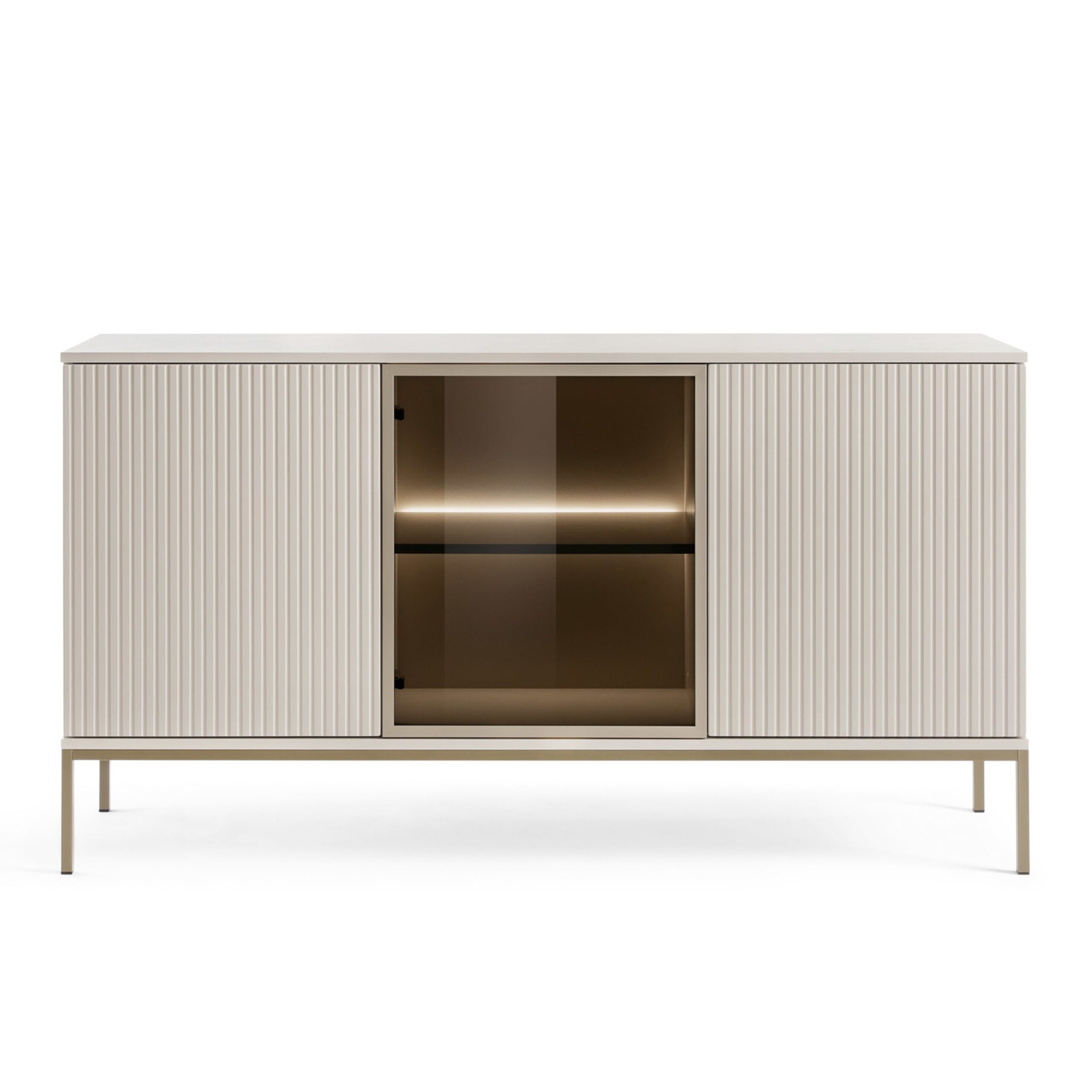La commode Laval K154 est un meuble créé pour les intérieurs modernes et loft. Son design spacieux de couleur cachemire a été complété par des lattes décoratives sur le devant, ce qui donne à l’ensemble un caractère élégant. L’agencement à trois portes avec un système d’ouverture par pression permet une utilisation confortable et esthétique sans poignées visibles. L’intérieur de la commode cache de nombreuses étagères pouvant accueillir des documents, de la vaisselle ou du linge de maison. C’est une solution fonctionnelle et élégante pour le salon, la salle à manger ou le couloir.