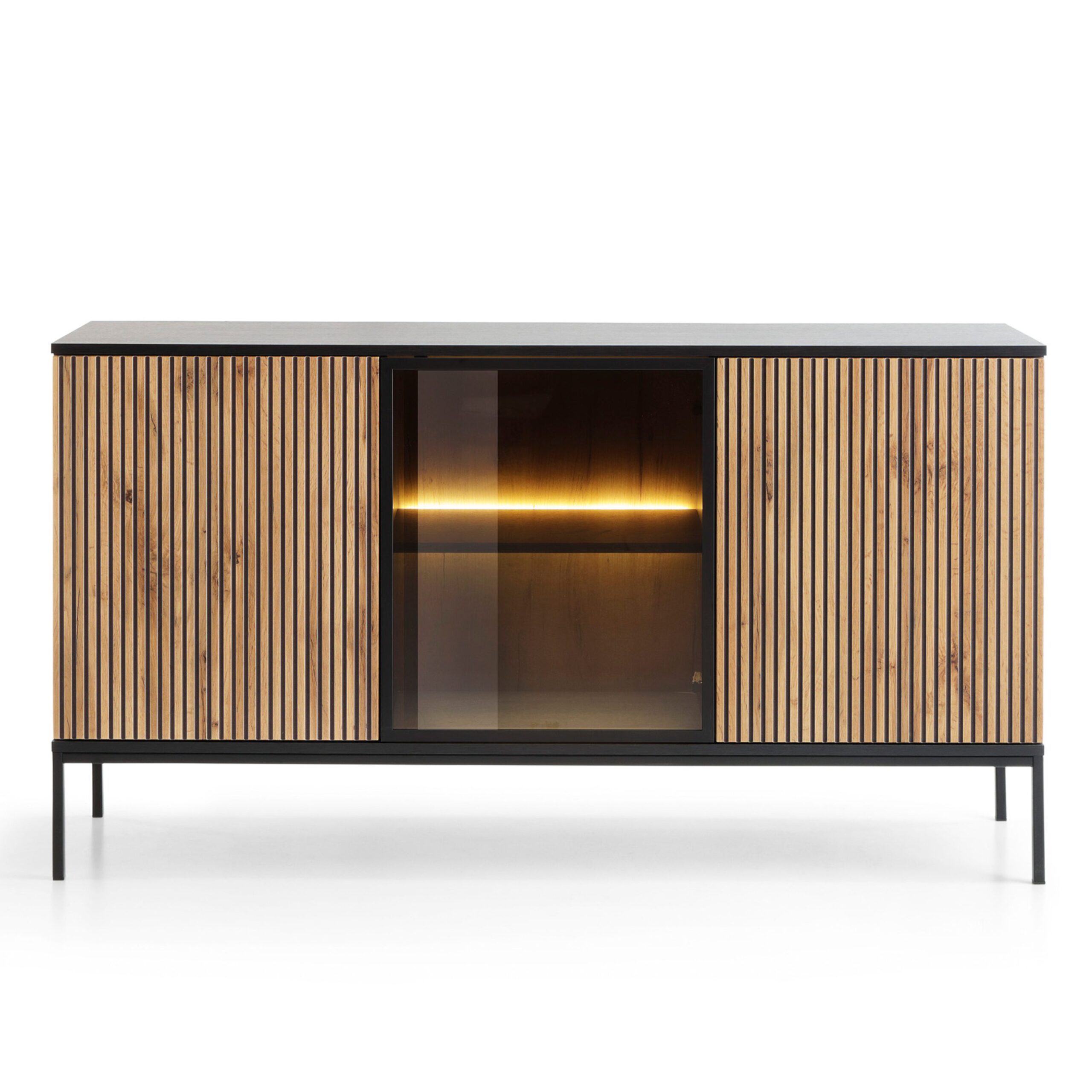 Laval K154 – commode, chêne wotan, noir avec lattes, largeur 154 cm, hauteur 83 cm, profondeur 39 cm