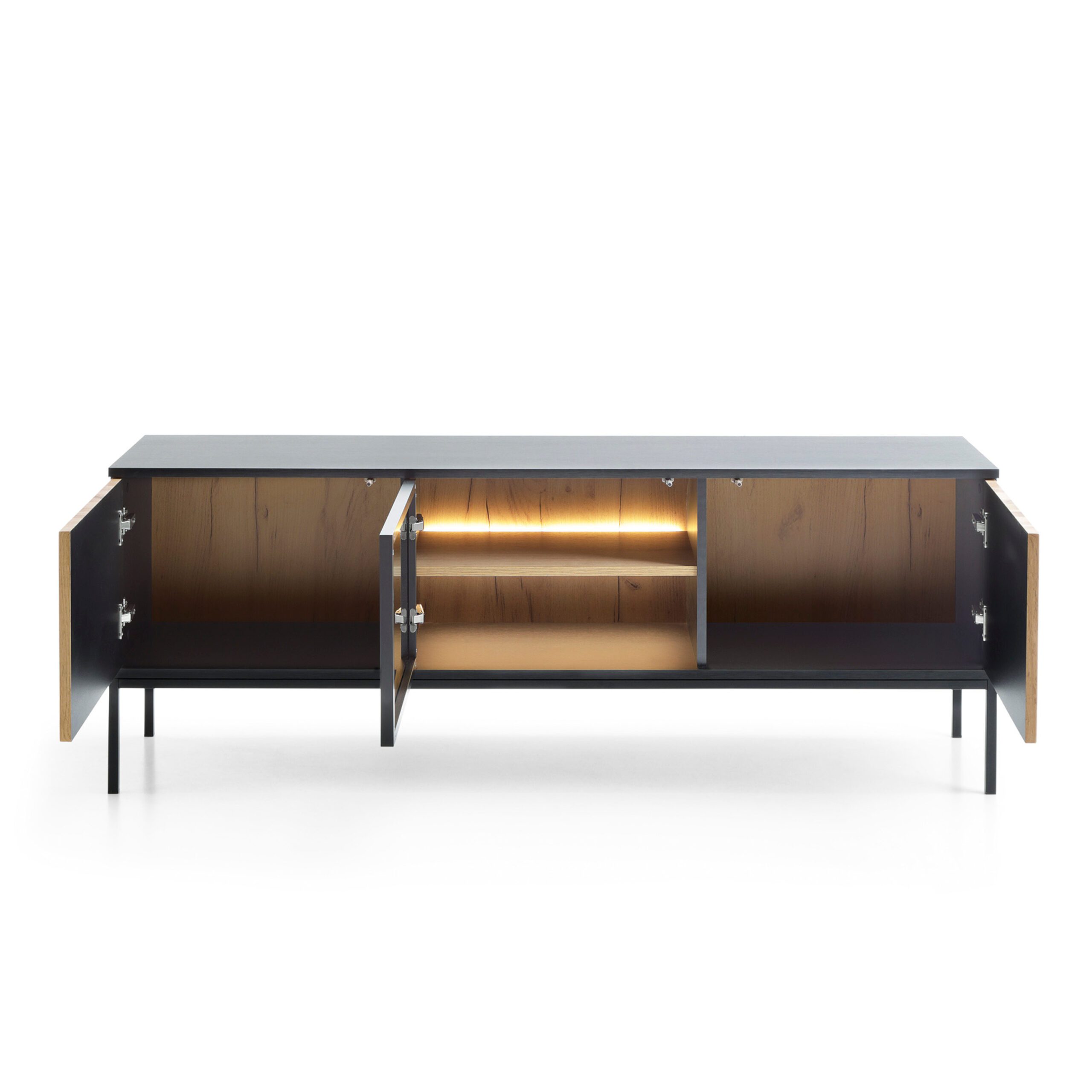 Le meuble TV Laval 154 est un meuble élégant et moderne au style monochromatique affirmé, constituant un complément parfait de la collection Laval. Il se distingue par l’association subtile d’un corps mat et de façades à rainures verticales (lamelles), qui confèrent à l’ensemble un aspect luxueux et unique.