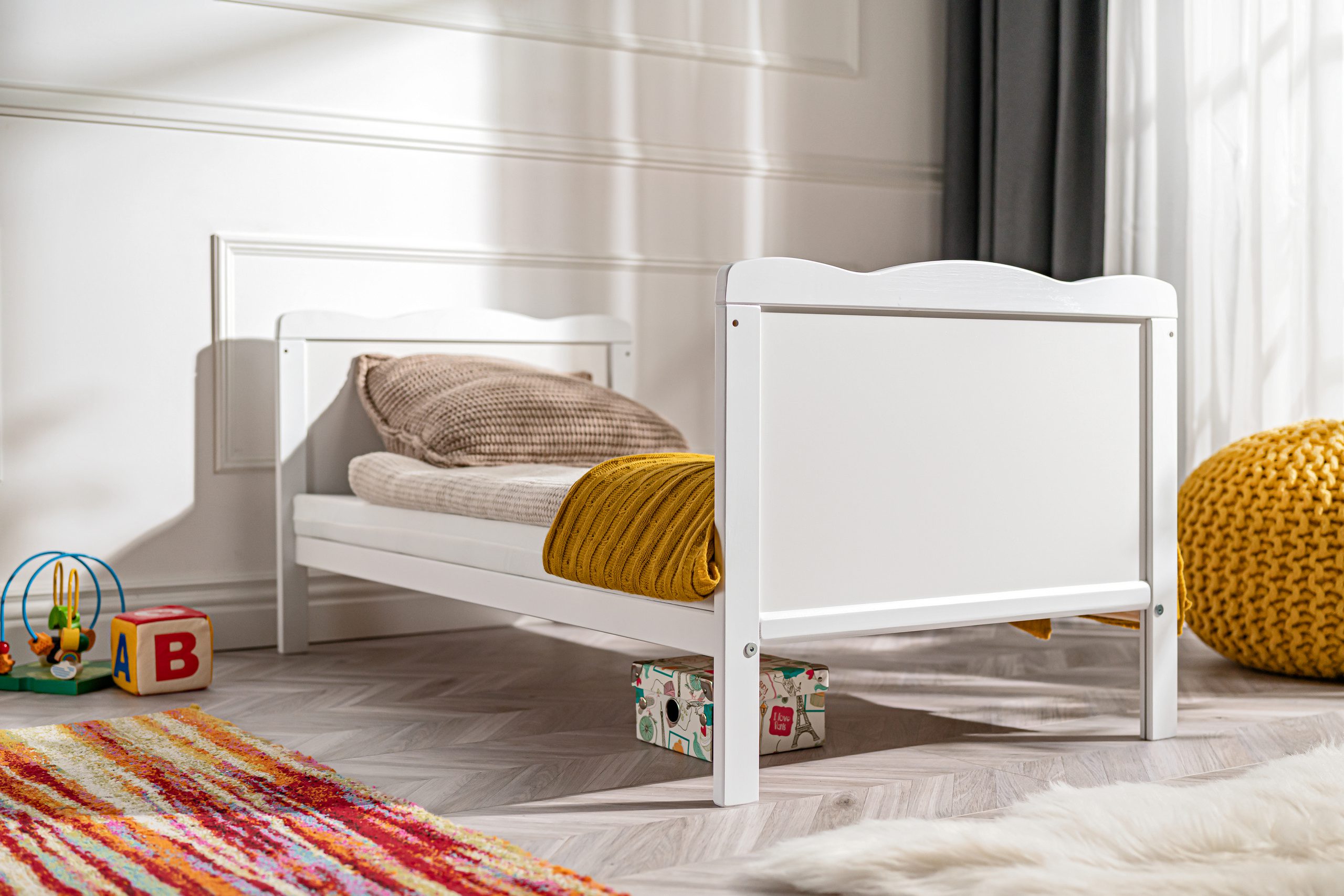 Aurora s’adapte aux intérieurs de différents styles. Son design minimaliste lui permet de s’intégrer dans n’importe quel intérieur. Le lit répond aux normes de qualité et de sécurité les plus strictes et vous donne la certitude que votre bébé dort dans de bonnes conditions.