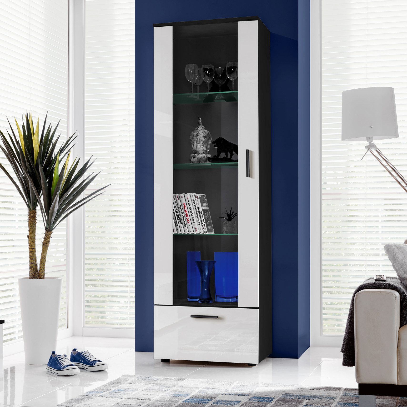 Les formes géométriques et les angles droits confèrent à la vitrine Alessandria une allure moderne, épurée et élégante.