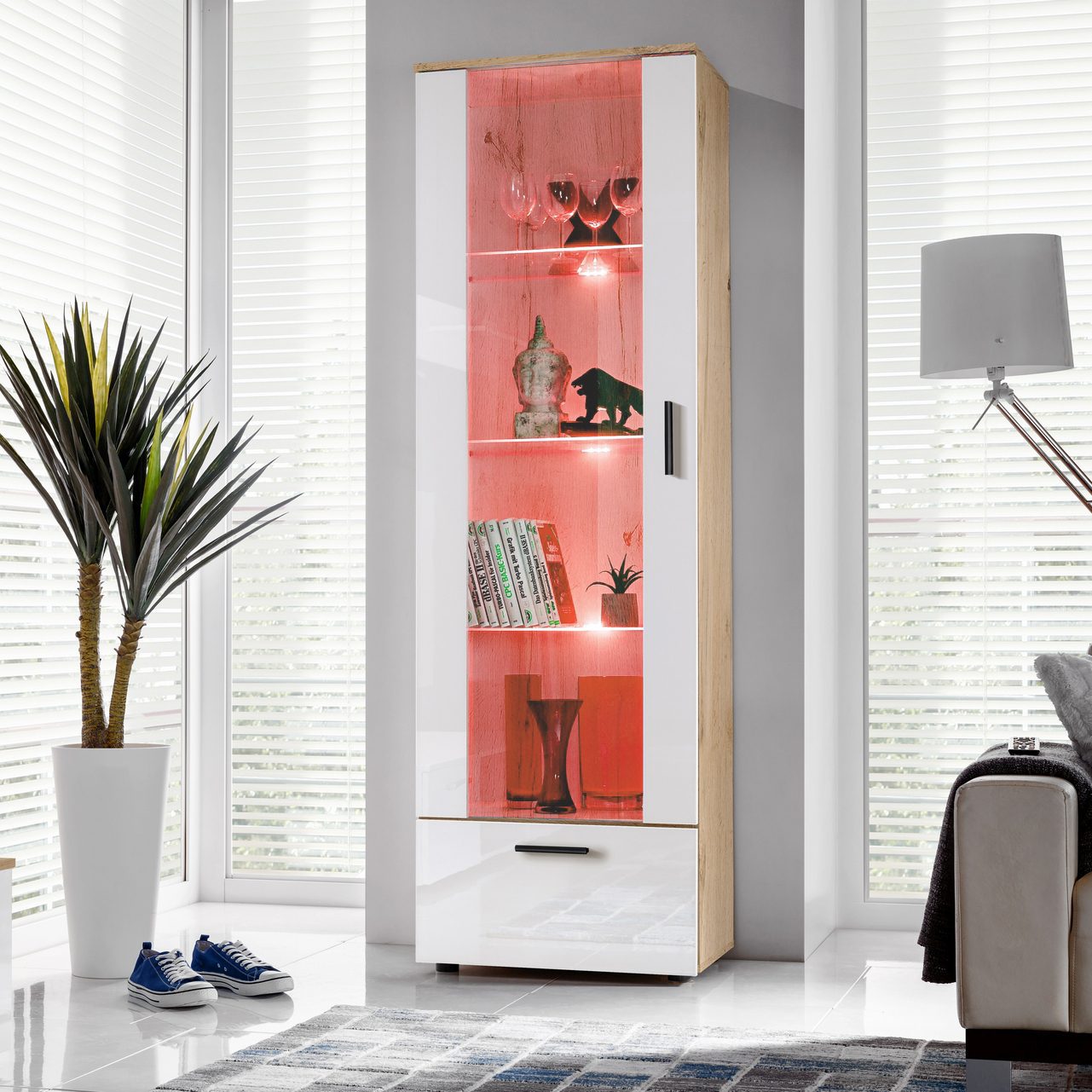 Présentoir sur pied Alessandria, blanc/wotan, éclairage LED RVB