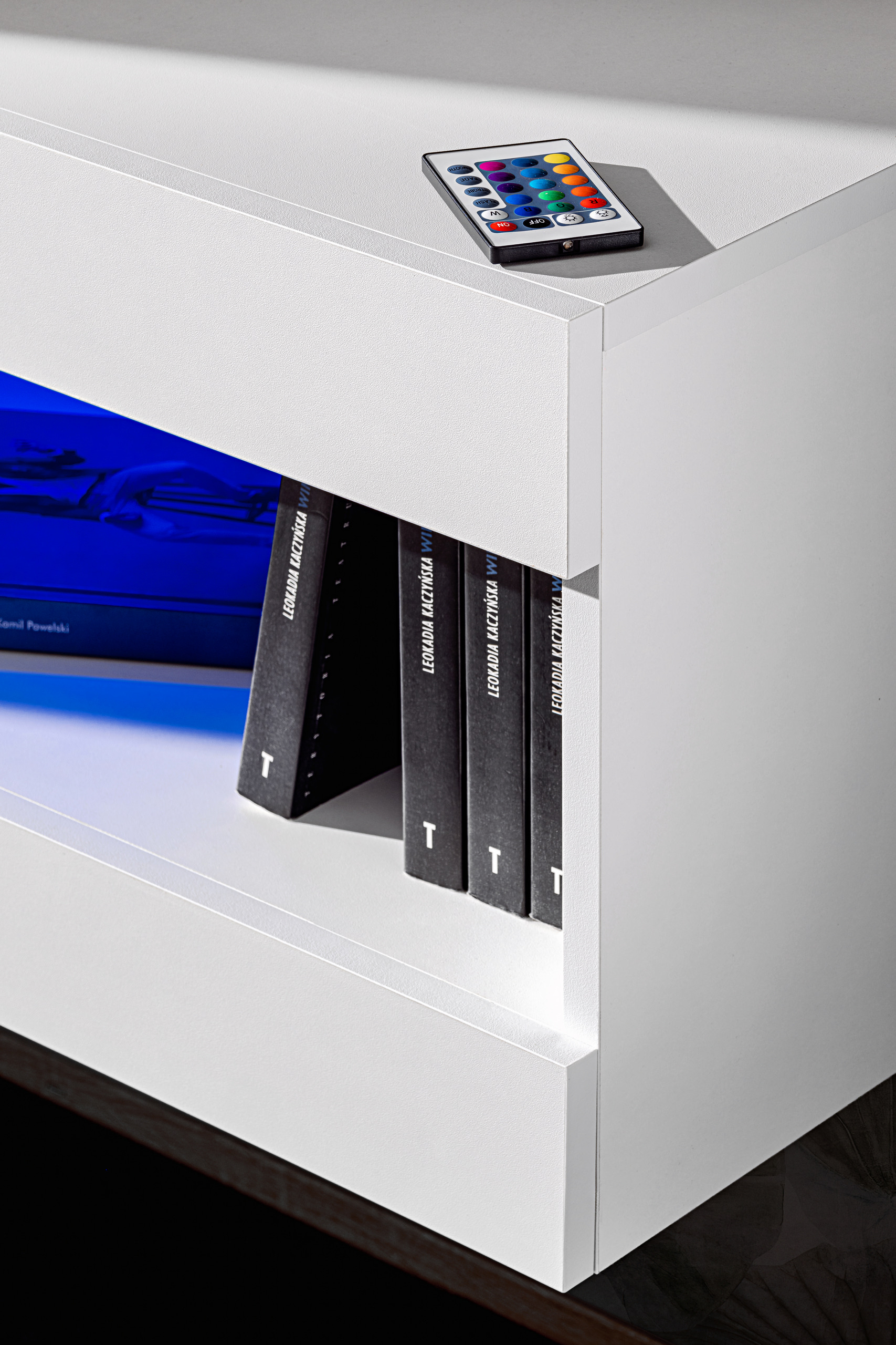 Set, Furniture, Tivoli SET6, Blanc/Noir, Largeur 200cm x Hauteur 195cm x Profondeur 35cm, LED Bleu, pour Salon, Chambre à coucher