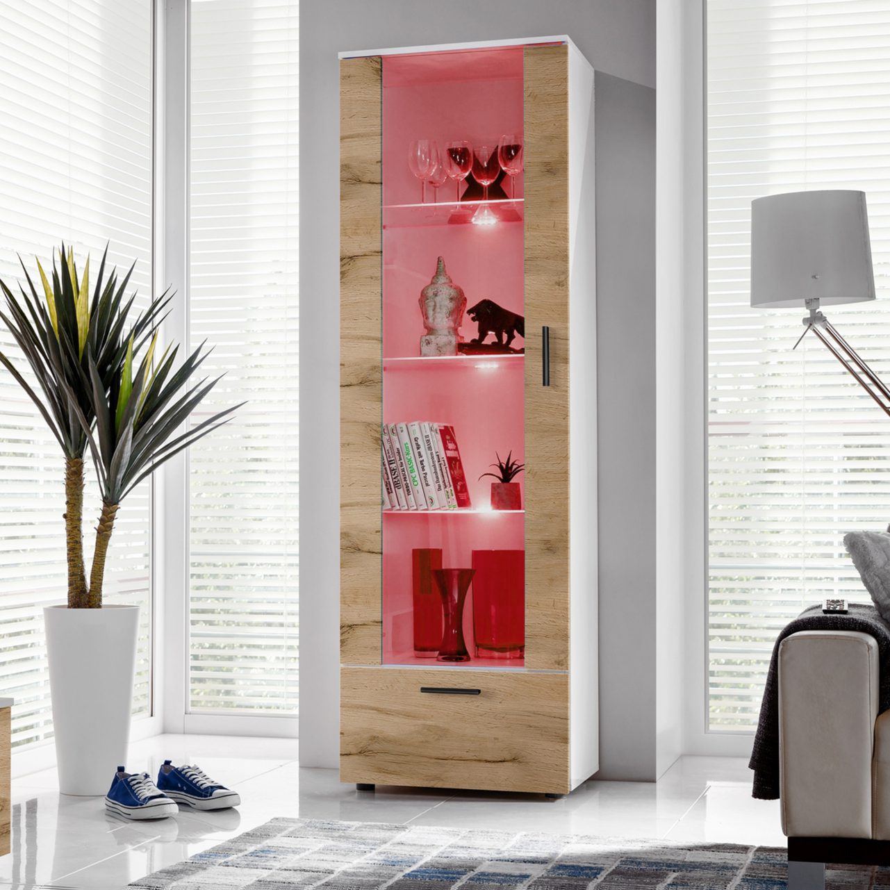 Vitrine Armoire Alessandria, Wotan/blanc, éclairage LED RVB